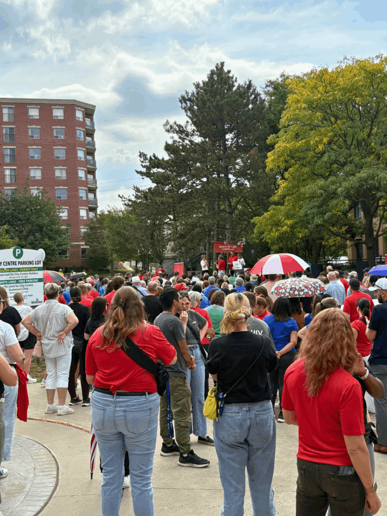11:00 AM: Gather at Waterloo City Hall (100 Regina St S, Waterloo, ON N2J 4P9)